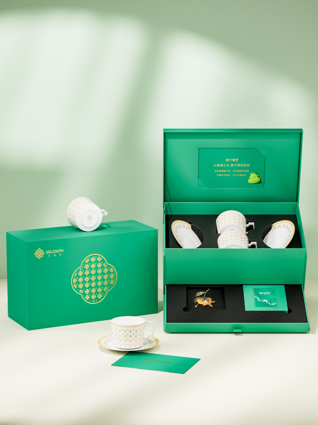 礼盒内含:杯碟、缠花、香挂