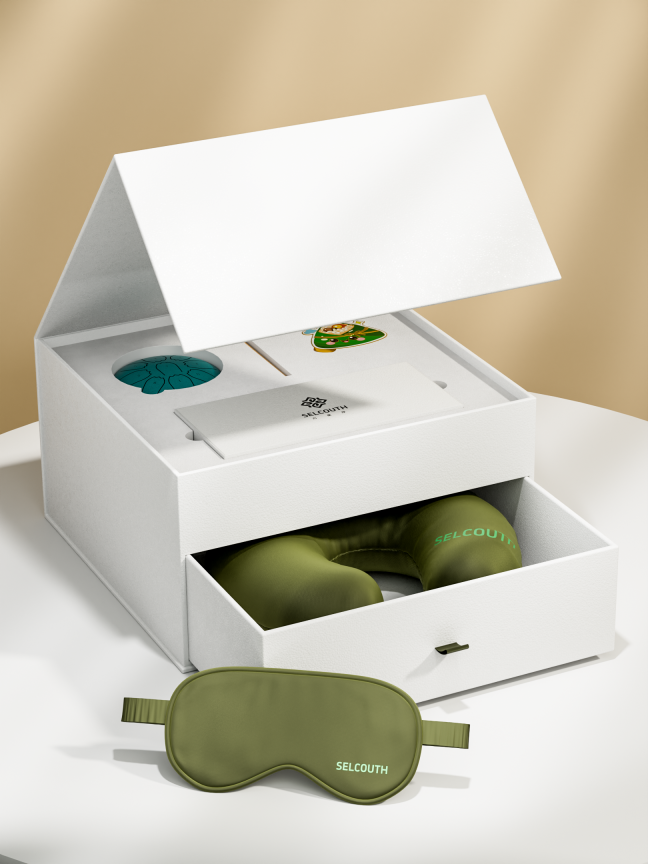 礼盒内含:真丝颈枕、眼罩、手掌空灵鼓、冰箱贴、贺卡
