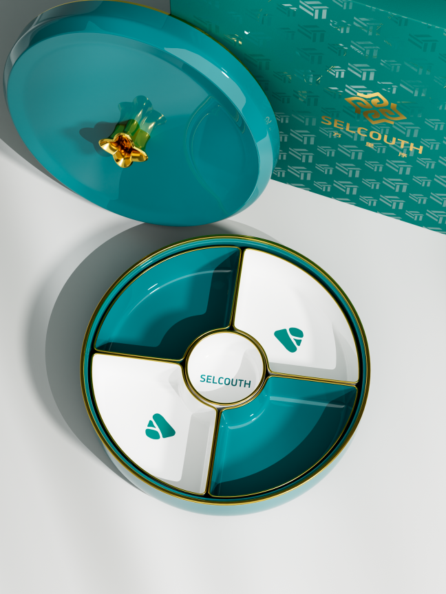 礼盒内含:扇形碟、圆形碟、圆形大盘、圆形上盖、贺卡